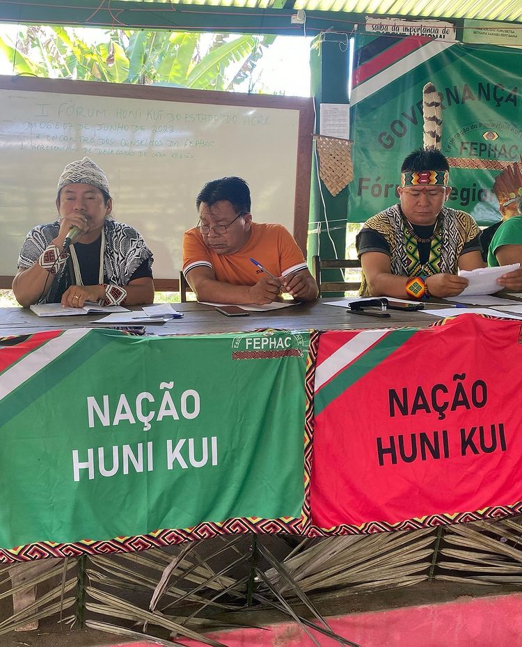 On the 6th, 7th and 8th of June, in the region of Feijó, they gathered at the 1st REGIONAL FORUM HUNI KUI, which took place in Shubuã da Aldeia paroá, in the Katukina/Kaxinawá territory, where matters of collective interest to the local communities and at the of huni kui territories in the state, the forum was attended by the huni kui council coming from all the Huni kui territories in the state, this action, which is carried out by FEPHAC – Federation of the Huni kui People of the State of Acre, will take place in seven municipalities where inhabit the Huni kui people.